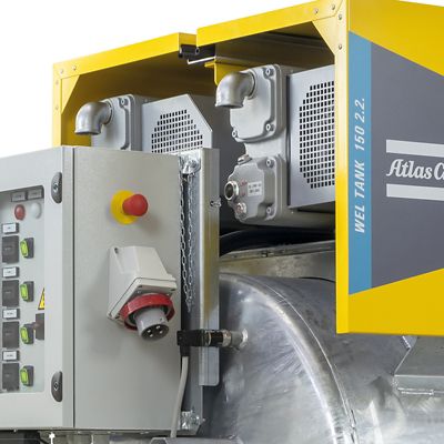 Установки водопонижения Atlas Copco серии WEL TANK Представляет собой два дренажных насоса и два вакуумных насоса, которые работают сообща. После включения вакуумные насосы создают разрежение в иглофильтрах и коллекторах, когда вода заполнит систему и начнет подниматься в резервуаре установки, в работу вступают дренажные насосы. Возможно отдельно включать один вакуумный и один дренажный насос, либо оставить систему работать автоматически.