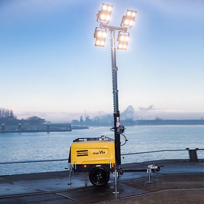 Осветительная мачта Atlas Copco V5+ (на прицепе) Осветительная мачта со светодиодными лампами Atlas Copco V5+ позволяет экономить порядка 30 рублей каждый час работы за счет более низкого расхода топлива в сравнении с моделями с металлогалогенными лампами V4. За год эксплуатации ежедневно в течение 8 часов экономия составит до 80 000 рублей. Таким образом, данная модель станет оптимальным выбором для применений, когда планируется интенсивная эксплуатация оборудования.