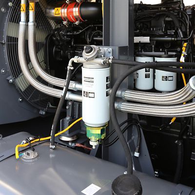 Компрессор оснащен системой PACE, которая реагирует на изменения потребления сжатого воздуха увеличением или снижением оборотов двигателя, что снижает затраты мощности двигателя и расход топлива. Эффективное рабочее давление в рамках заявленного диапазона легко устанавливается с помощью панели управления. Переключатель на два предустановленных значения для быстрого изменения рабочего давления, что особенно важно при бурении. Контроллер Xc2003 имеет класс защиты IP 65 и подходит для эксплуатации в самых сложных погодных условиях. Кнопка аварийного останова.