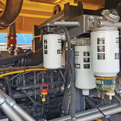 Компрессор оснащен одноступенчатым винтовым маслозаполненным компрессорным элементом Atlas Copco, винты которого уравновешены, что обеспечивает низкий уровень шума и вибрации. Отсутствие впускных и выпускных клапанов способствует повышению надежности работы. Винтовой элемент обеспечивает постоянную производительность в течение всего срока службы, а его техническое обслуживание ограничивается заменой компрессорного масла и фильтров. Дизельный двигатель Cummins с электронной системой впрыска топлива оснащен турбонаддувом с регулируемой производительностью и интеркуллером. Топливная система двигателя надежно защищена от воды и загрязнений, присутствующих в топливе низкого качества, высокоэффективной системой фильтрации.